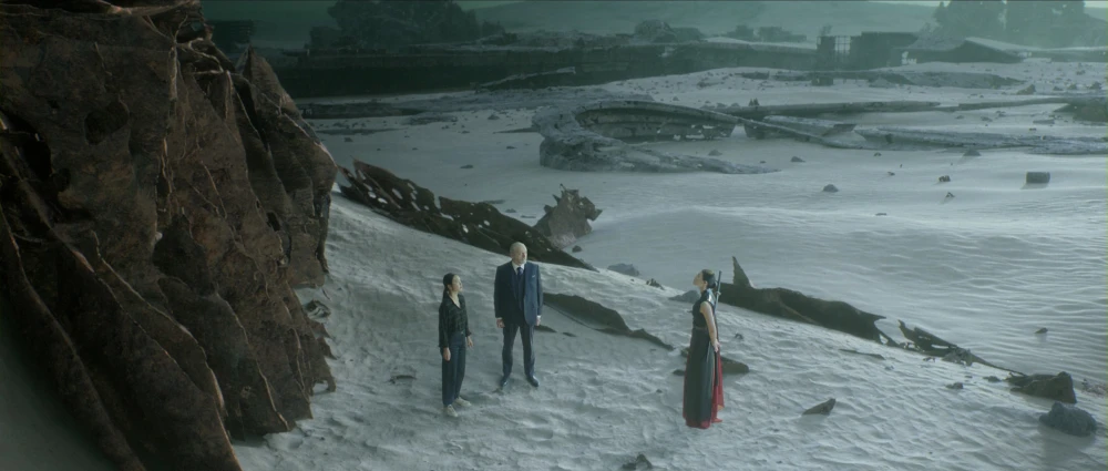 La producción es cara (20 millones de dólares por episodio) y espectacular: efectos visuales de primer nivel, especialmente las secuencias del mundo virtual trisolariano y las partículas sophon. La estética mezcla laboratorios científicos contemporáneos con paisajes alienígenas surrealistas. Netflix globalizó la historia (en los libros los protagonistas son chinos) añadiendo diversidad internacional, decisión controversial para algunos fans.