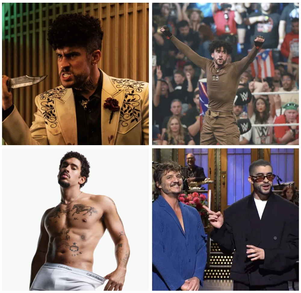 El Conejo Malo no es solo música. Es lucha libre en la WWE. Es modelo de alto nivel con diferentes marcas globales. Vende calzones para Calvin Klein. Es cine en Hollywood junto a Brad Pitt. Es comedia en el programa Saturday Night Live.