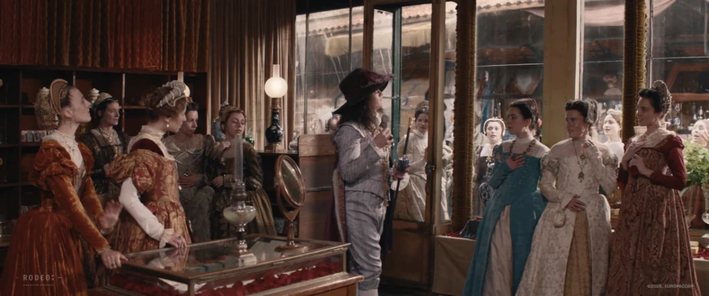 Otro elemento que ejemplifica lo kitsch es el perfume, un hallazgo extraño de Besson ausente en el imaginario de Drácula. Esta fragancia que enloquece a las mujeres no forma parte de la novela de Stoker ni de ninguna otra adaptación cinematográfica. Con este perfume, Drácula busca a Elisabeta a través de los siglos, como se muestra en el pasaje del Palacio de Versalles. Frustrado por no encontrarla, el protagonista termina bebiendo la sangre de las cortesanas en una orgía que transforma el género: del drama romántico pasamos a un musical teatral con coreografías propias de Broadway. Así, el acto de clavar los colmillos se vuelve una emoción estilizada, muy apartada del terror gótico de Coppola. Pareciera que Besson desea recordar que su país es la cuna de los perfumes; aquí, el deseo entra por el olfato, el sentido quizás más primitivo, poderoso estímulo erótico.