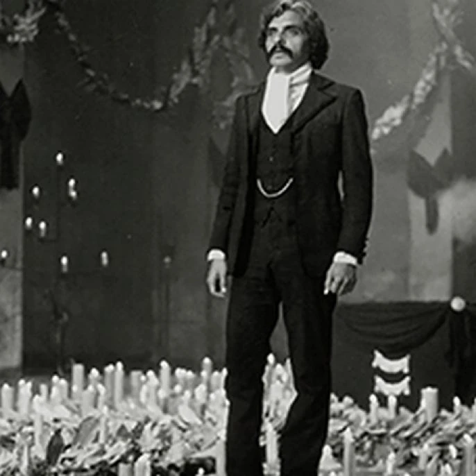 Manuel Ojeda cual vampiro hierático. Pedro Páramo (el hombre de la media luna) (Bolaños, 1976)