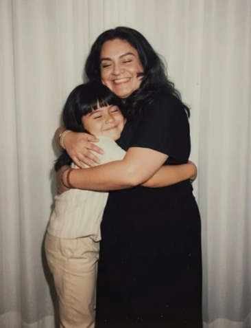 Yo abrazando a la niña que fui. Imagen creada con inteligencia artificial para recordarme que siempre vale la pena cuidar a esa pequeña que llevamos dentro.