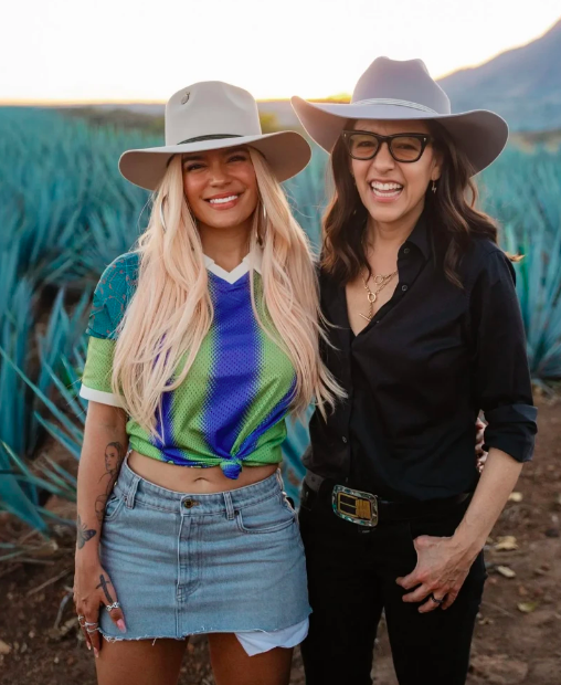 La cantante Karol G con la CEO y fundadora de Casa Dragones, Bertha González Nieves. Foto: IG @200copasbycasadragones