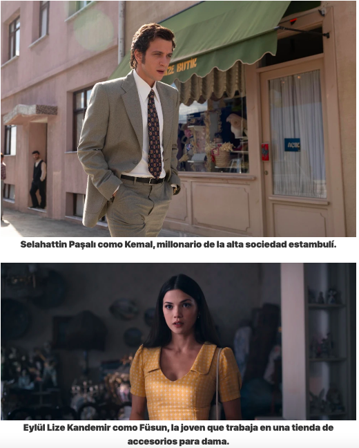 El museo de la inocencia (Masumiyet Müzesi), la miniserie de 9 episodios, dirigida por Zeynep Günay, con guion de Ertan Kurtulan, sigue muy de cerca la novela de Orhan Pamuk. No en balde el escritor estuvo muy involucrado con la producción televisiva al punto de que hace un par de cameos, pues Kemal –supuestamente fue su amigo en la vida real– le encarga escribir su historia. Quiero decir: Pamuk, en un interesante giro metaficcional, aparece como personaje dentro de su propia novela. El reparto principal incluye a Eylül Lize Kandemir (Füsun), en su primer papel en una producción de escala global, y actores más consagrados como Selahattin Paşalı (Kemal, el burgués occidentalizado con capital simbólico y económico) y Oya Unustası (Sibel, la prometida de Kemal, también de la alta sociedad). Este es el triángulo amoroso que se va a formar: Kemal y Füsun, los amantes que viven un amor furtivo y Sibel, la novia ilusionada que espera el día de su boda.