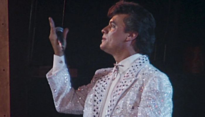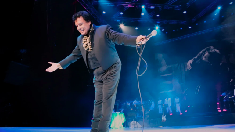La escritora y ensayista Susan Sontag (Estados Unidos, 1933-2004) en su célebre Notes on Camp (1964), define lo camp como un amor excesivo por lo exagerado, por el artificio, por la teatralidad. “Soy espectáculo y lo sé”, parece decir el camp. Y eso podría decirlo también Juan Gabriel. El Divo de Juárez es camp puro: canta, dramatiza, actúa, llora, teatraliza. La mano levantada, el giro de muñeca, el brinquito, el micrófono apuntado al público, la cintura suelta, los movimientos provocativos y cachondos: todo es puesta en escena. Cuevas lo muestra así, intercalando insertos que revelan la fuerza estética de su performance.