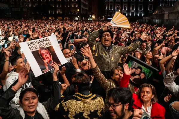 Pero no podemos olvidar la dimensión queer del camp. Aunque Juan Gabriel nunca habló públicamente de su sexualidad —salvo aquella icónica respuesta a Fernando del Rincón, “Dicen que lo que se ve no se pregunta, mijo”—, su estética es una codificación de lo queer: sus brillos, lentejuelas, chalecos bordados, sus movimientos feminizados. En un país profundamente machista y homofóbico, Juanga logró desarmar la violencia simbólica y unir a públicos que, durante dos o tres horas, olvidaban sus prejuicios para cantar, emocionarse y llorar con él. Los vemos estallar con canciones como esta: ¡yooo noooo naacííí paaaraaa aaamaaar!… o como esta: ¡Queeeridaaa!… Todos unidos en la necesidad de sentirnos como pueblo… ¡caray!…