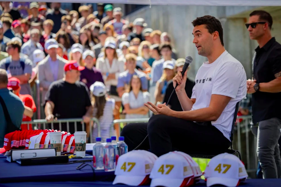 Charlie Kirk, fundador de Turning Point USA, fallece a los 31 años por una herida de bala. En esta foto (AP) tomada el pasado mes de abril durante uno de sus populares encuentros donde invitaba a la gente a debatir ideas.