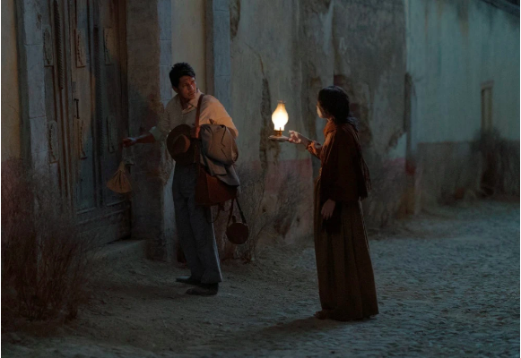 Tenoch Huerta como Juan Preciado y Mayra Batalla como Damiana Cisneros en Pedro Páramo (Prieto, 2024).