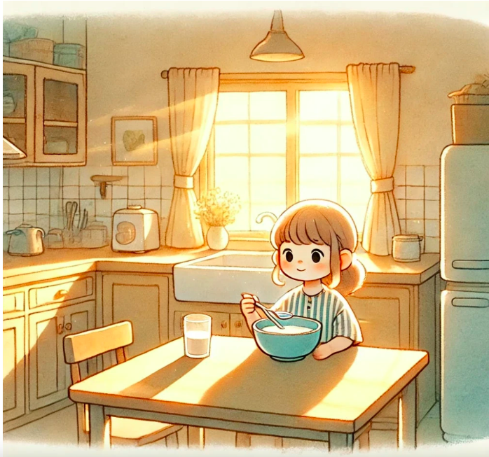 I fixed my hair and walked quietly to the kitchen. The floor was cool under my feet. I poured a bowl of cereal, and sat at the table while the sunlight crept across the counter.