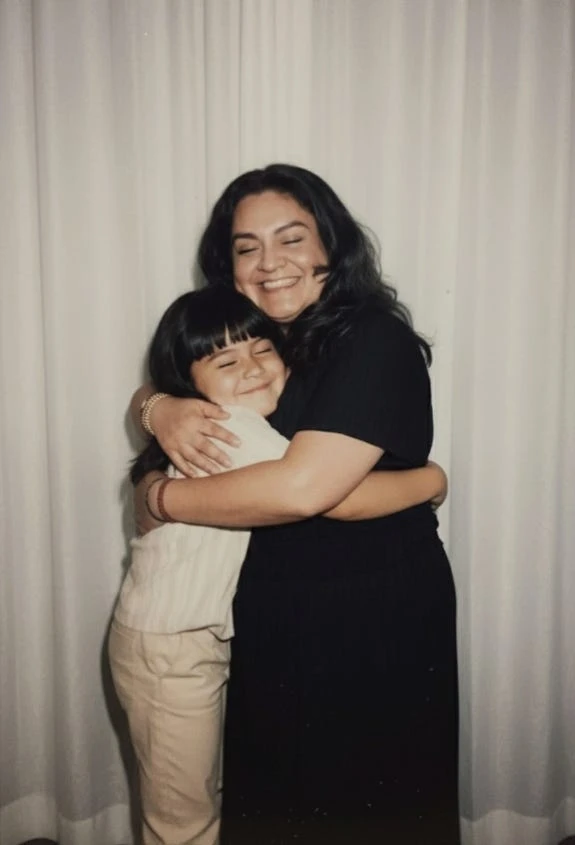 Yo abrazando a la niña que fui. Imagen creada con inteligencia artificial para recordarme que siempre vale la pena cuidar a esa pequeña que llevamos dentro.