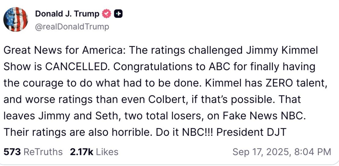 La suspensión indefinida del programa de Jimmy Kimmel no es un caso aislado. Detrás de esa decisión se mezclan la rivalidad pública con el presidente Trump, las presiones a cadenas de televisión y, para muchos, la sospecha de que la censura dejó de ser un concepto lejano para convertirse en una realidad tangible.